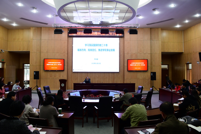 为深入贯彻学习国务院发布的《国家职业教育改革实施方案》纲领精神,进一步明确我院职业教育发展规划,11月20日下午,我院召开党委中心组(扩大)学习会,李永盛院长以学习《习近平谈治国理政》第三卷为启示,以“学习落实国家职教二十条,瞄准方向、找准定位、推进学院事业发展”为主题作专题报告,会议由党委副书记刘丽主持。