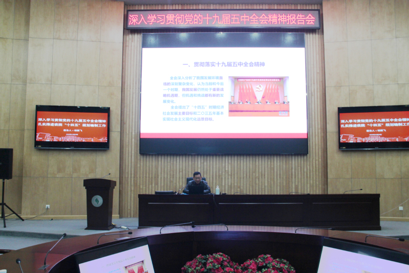 胡院长围绕精准把握党的十九届五中全会精神和习近平总书记在党的十九届五中全会上的重要讲话精神、精准把握贯穿于“十四五”规划《建议》中的思想理论和逻辑线索、精准把握“十四五”规划《建议》总论、分论等三大板块的核心要义、精准把握和着力构建新发展格局重要任务、精准把握提高党领导贯彻新发展理念、构建发展新格局的能力和水平等方面,对全会精神做了系统阐述和深入解读。