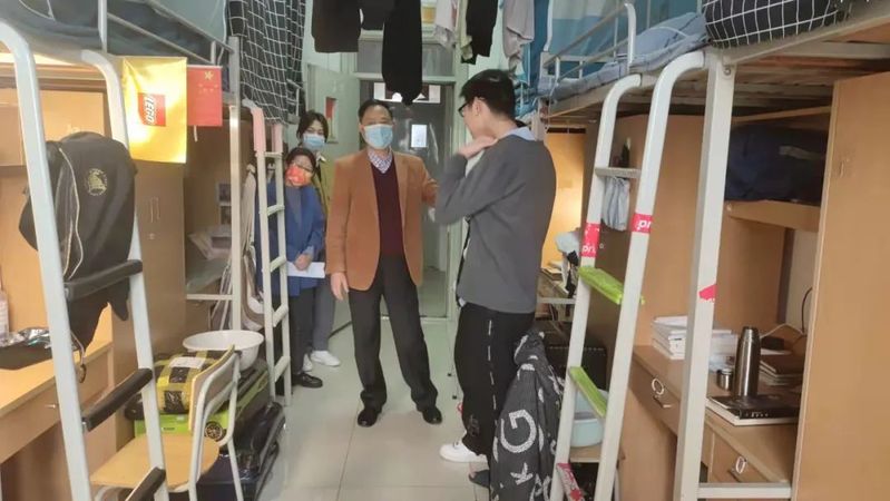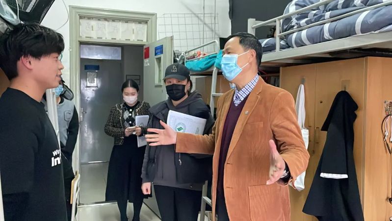 党委书记姜富明深入校园巡查,到学生寝室查看学生生活学校情况,与学生面对面亲切交流,实地了解师生需求,积极回应师生关切,指导检查防控工作。