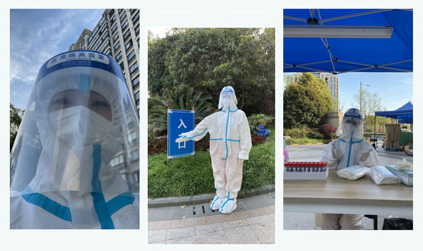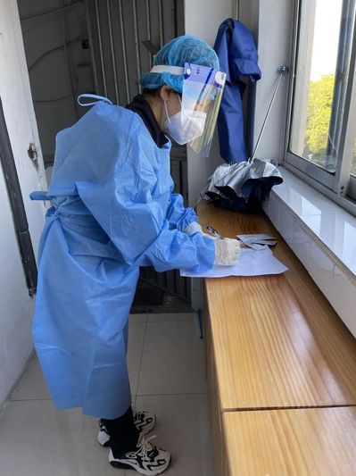 护理学院党员教师刘月始终记得人民日报曾经刊登过的一句话:“你所站的地方就是你的祖国,你怎样,中国就怎样你光明,中国便不会黑暗。”在这场严峻的“守卫战”中,她感到很荣幸能够有机会能成为一名疫情防控的志愿者,可以尽一份自己的绵薄之力。她执勤期间主要负责在社区进行楼道物资的配送、抗原检测试剂的分发。她相信在众志成城的努力之下,在指日可待的将来,在万里长空之下,一定是山河无恙,岁月静好!