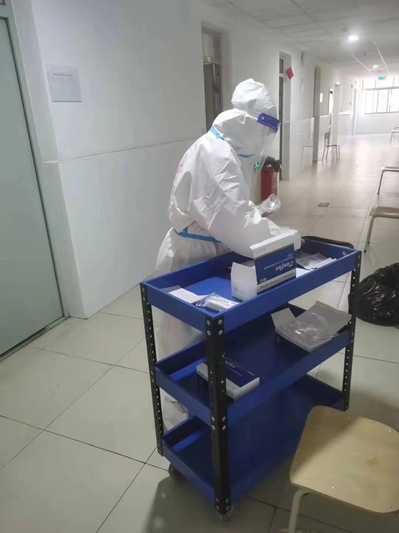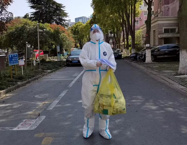 在楼栋解除隔离之后,江珊珊老师毫不犹豫的报名参与了社区的防疫志愿者工作,配合社区核酸检测工作;将政府发放的防疫物资送到户;上门帮助居民生成核酸检测码并提前打印;对于有就医需求的居民及时做好沟通等。