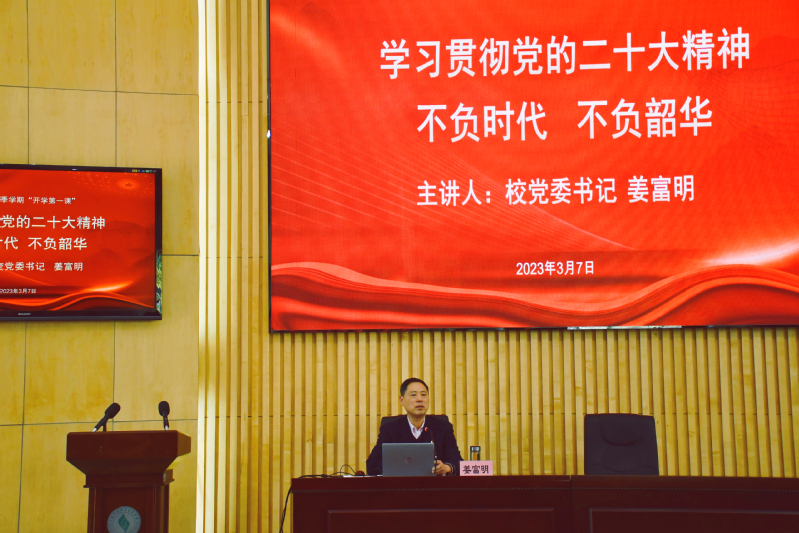 万物更新,春暖花开,伴随着春天到来的步伐,我校迎来了开学季。37日下午,校党委书记姜富明以“学习贯彻二十大精神 不负时代不负韶华”为题,为学生讲授“开学第一课”。