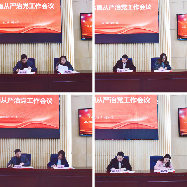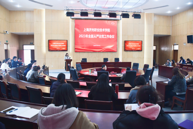 姜富明书记在会上作了题为《学习宣传贯彻党的二十大精神 坚持以严的基调强化正风肃纪》的报告,分析了当前全面从严治党面临的形势,传达了中央及上海市对全面从严治党新部署,提出了学校全面从严治党工作要求。他指出,党员干部要深入贯彻落实党的二十大和二十届中央纪委二次会议精神,按照十二届上海市纪委二次全会提出的2023年工作重点部署,力争做到五个方面的工作要求:一是用习近平新时代中国特色社会主义思想凝心铸魂,增强全面从严治党政治自觉;二是全面履行管党治党政治责任,主动担当作为;持续深化落实中央八项规定精神,驰而不息纠治“四风”;四是坚持全面从严,一体推进不敢腐、不能腐、不想腐;五是党员领导干部带头廉洁自律,牢守纪法底线。姜富明书记寄语全校党员干部四句话:要爱党爱国,加强二十大精神的学习,坚定政治立场,与党中央保持高度一致,严肃党的政治纪律,保持政治上的坚定和清醒,经得起任何风浪的考验;要廉洁自律,经得住金钱与物质利益的各种考验,做到不突破“红线”,不心存侥幸,持续深化落实中央八项规定精神;要求真务实,始终把师生放在心上,力戒形式主义、官僚主义,真心实意为师生服务,保持高尚的情操,树立良好的形象,远离不良诱惑,严守思想道德防线;要力争上游,用心想事、主动干事、担当处事,以事业充实人生,以事业实现价值。