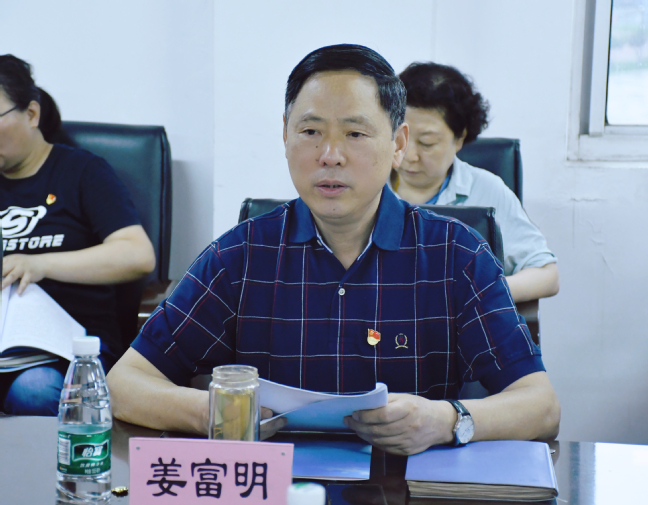 ▲校党委书记姜富明主持调研阶段性成果交流会并作交流发言