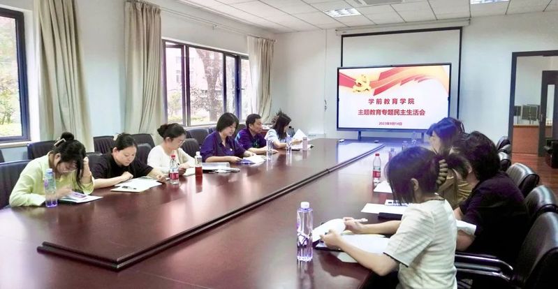 9月14日,学前教育学院直属党支部召开学习贯彻习近平新时代中国特色社会主义思想主题教育专题民主生活会,校长胡展飞到会指导,学前教育学院直属党支部书记徐珺烨主持此次会议,全体党员参加。