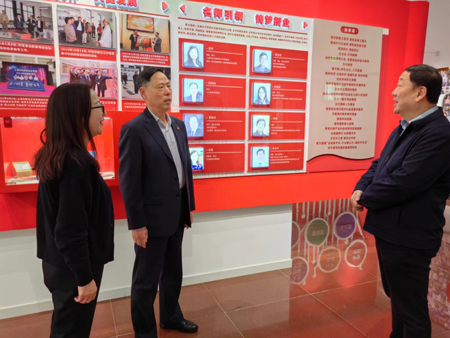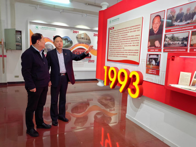 开班仪式前,同济大学副校长石振明在我校党委书记姜富明和党委副书记刘丽的陪同下参观我校校史馆。