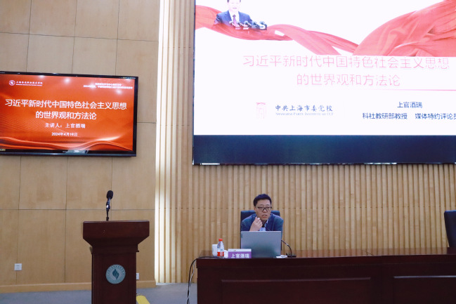 开班仪式结束后,上官酒瑞教授作《习近平新时代中国特色社会主义思想的世界观和方法论》报告。他围绕“根本方法(世界观):唯物辩证法”“思维方法:战略、历史、辩证、系统、创新、法治、底线”和“具体方法:掌握正确方法、提升工作能力”三个方面进行了详细阐述。上官酒瑞的报告主题鲜明、内容丰富,有助于全体学员深入学习贯彻党的二十大精神,进一步深刻把握习近平新时代中国特色社会主义思想的世界观和方法论。