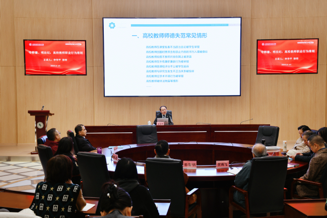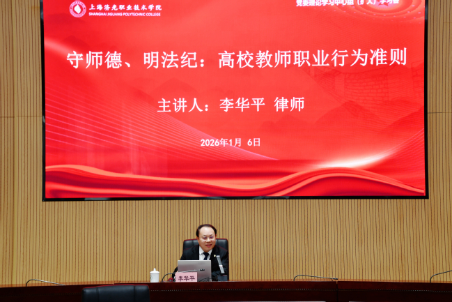 1月6日上午,学校召开党委理论学习中心组(扩大)学习会,专题学习教育法律法规。本次特邀学校常年法律顾问、上海七方律师事务所主任李华平律师来校作专题报告。校党委理论学习中心组成员、教师工作委员会成员,全体中层干部、全体思政老师和辅导员及相关职能部门工作人员参加学习。会议由党委副书记刘丽主持。 李华平律师是上海七方律师事务所首席合伙人,同时担任上海市总工会法律顾问、中共徐汇区委法律顾问、上海市徐汇区法学会副会长等多项职务,长期深耕教育领域法律服务,多次受邀为上海市教委及各高校、区县教育局开展校园普法讲座,拥有扎实的理论功底和丰富的实践经验。 报告中,李华平律师围绕高校师德师风建设主题,结合大量真实案例,系统梳理了高校教师常见的师德失范行为类型。他重点解读多个方面的风险点,通过具体案例剖析了各类失范行为的危害及法律后果。 关于师德失范行为的处理,李华平律师明确了“一票否决”的核心原则,详细介绍了不同情节失范行为对应的处理方式,包括批评教育、通报批评、取消评优晋升资格、解除聘用合同等,同时强调学校在处理过程中需坚持事实清楚、证据确凿、程序合法的原则,兼顾教育与惩戒的统一。此外,他还就教师在教学科研、日常管理中如何规范自身行为、防范法律风险提出了具体建议,提醒教师增强法治意识,严守职业红线。 会议总结时,刘丽副书记指出此次专题学习案例鲜活、分析透彻,兼具针对性与操作性,为学校进一步加强师德师风建设、提升教职工法治素养提供了重要实践指引。学校将以此次学习为契机,持续强化师德师风教育与法治建设,引导全体教职工坚定政治方向、自觉爱国守法,严守职业行为规范,以高尚的道德情操和严谨的法治意识投身教育教学工作,切实筑牢学校教育教学工作的法治根基,为培养高素质技术技能人才提供坚强保障。