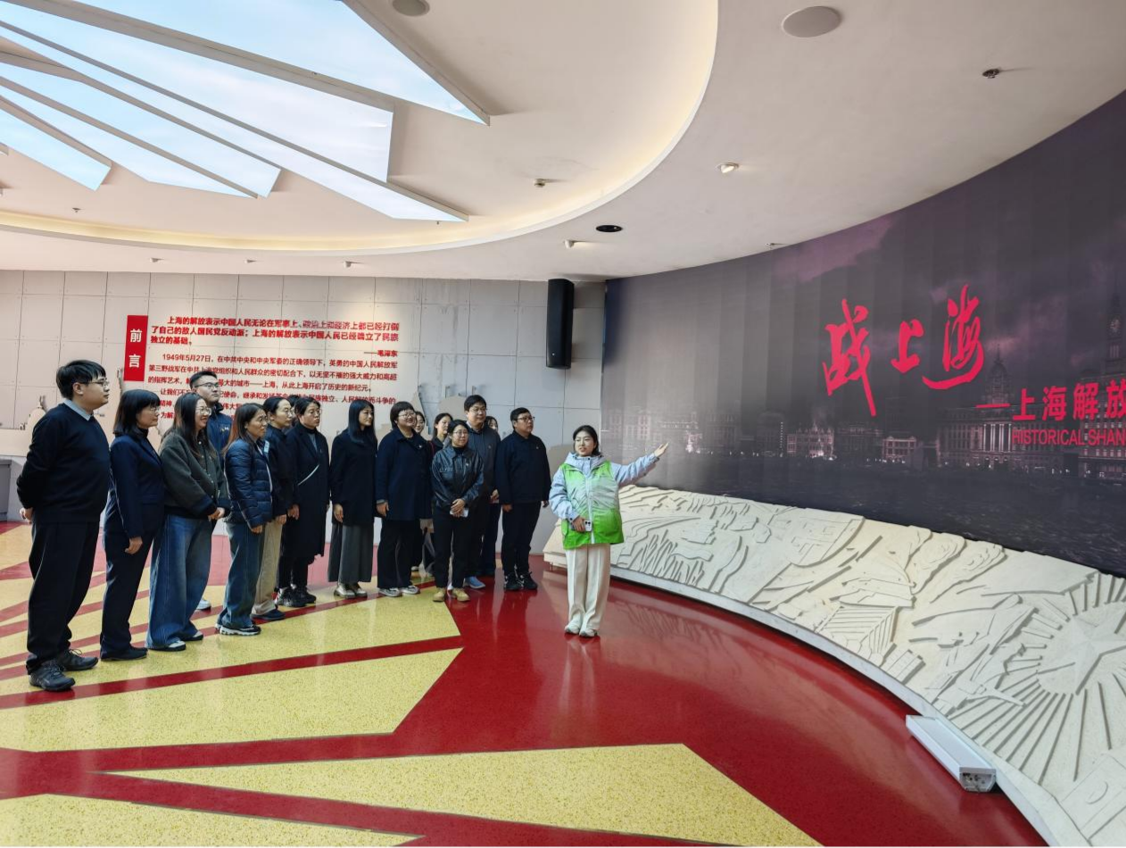 宣誓仪式结束后,师生们有序走进上海解放纪念馆参观学习。馆内一件件珍贵文物、一幅幅历史照片、一段段感人史实静静诉说着革命先烈的英勇事迹。泛黄的书信、斑驳的遗物、血染的衣物,无不承载着先辈们坚定的理想信念与无畏的牺牲精神。大家驻足凝视、认真聆听讲解,在历史场景中回望烽火岁月,深切感受革命先烈为民族解放抛头颅、洒热血的家国情怀。